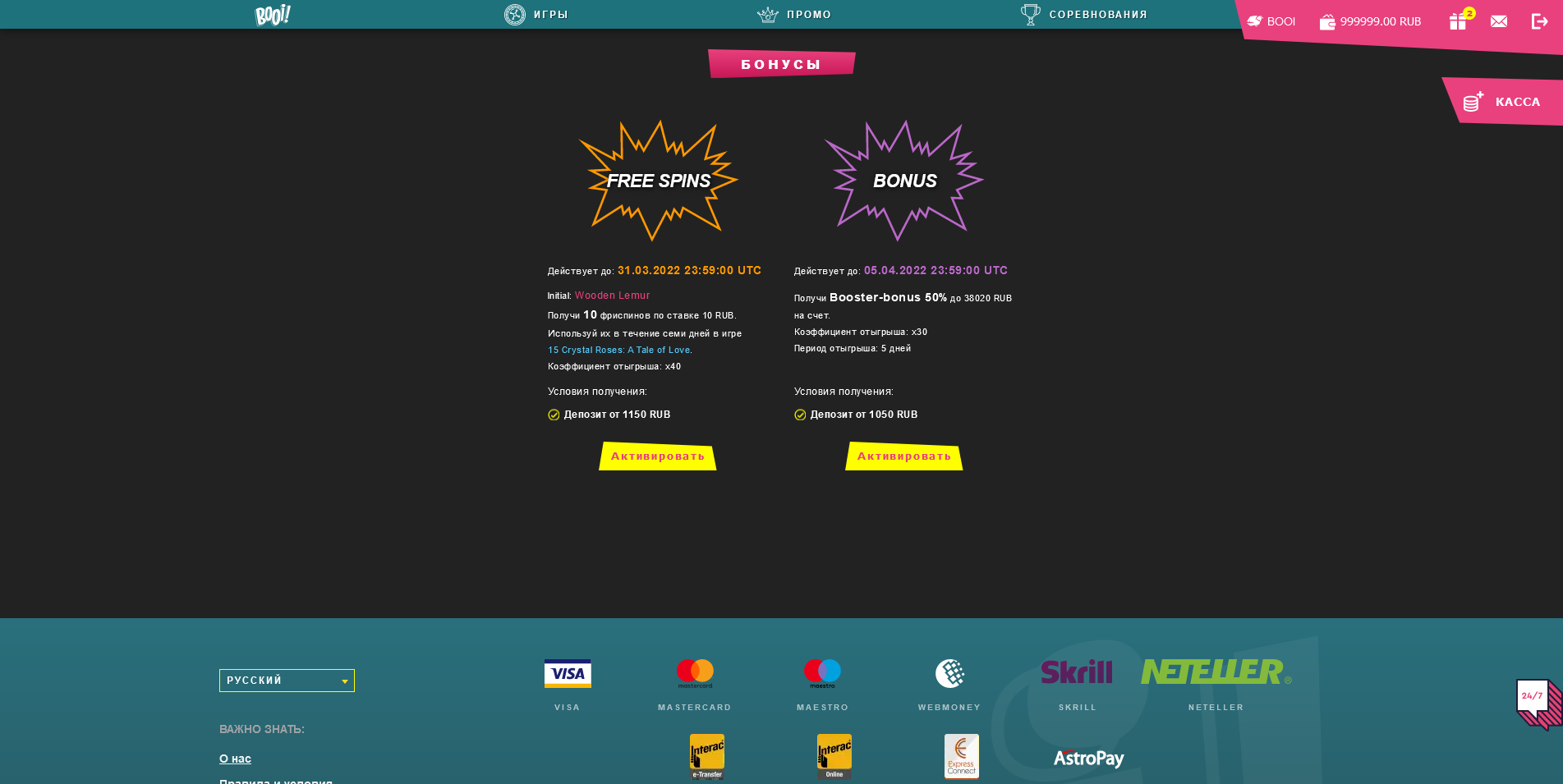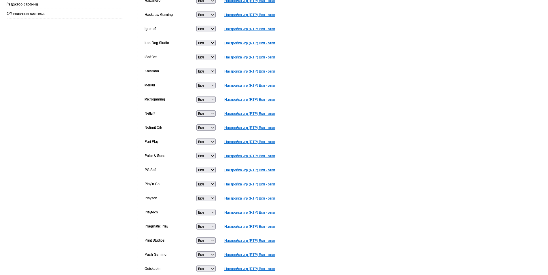 Возможности администратора: Бонусы игрокам или отдельному игроку - за депозит под вейджер, это могут быть % на депозит, бесплатные вращения или деньги Полный контроль каждого игрока и каждой его ставки Вывод самых активных игроков и авто бот для начисления им бонусов Обработка заявок на вывод денег Создание страниц с встроенным редактором кода Создание турниров по статусам игроков Создание лотерей, акций и розыгрышей Создание промокодов Создание джекпотов Рассылка писем на почту игрокам Рассылка сообщений в личную почту на сайте Подключение менеджеров Подключение модулей Полный контроль игр, как по провайдерам, так и по отдельности Карта мониторинга Запрет на регистрацию из определённых стран по IP Обновление системы в два клика И многое другое...